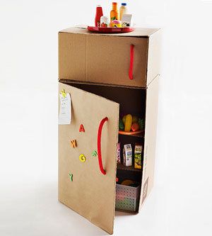 Este refrigerador será mucho más sencillo ya que solo necesitarás cuerdas para hacer las agarraderas y lo podrás llenar con cajas y botellas de alimentos vacías.