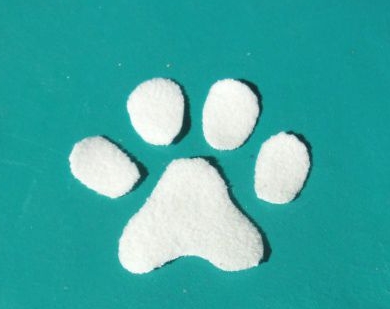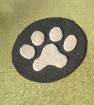 En este punto no te quedará sino pegar las huellas de fieltro blanca sobre el fieltro negro.