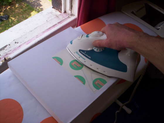 Luego toma el lienzo y coloca el papel transfer con la figura ya impresa. Pásale la plancha caliente por encima para trasferir la imagen al lienzo.
