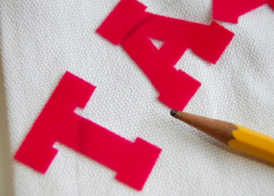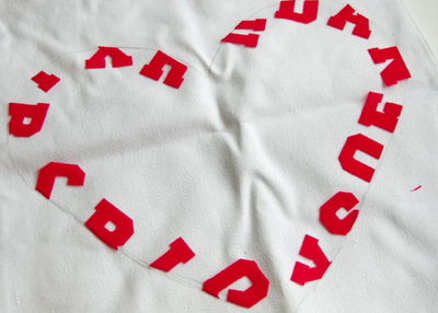 Paso 7: Ahora podemos posicionar otras letras al azar dentro del corazón e incluso podríamos componer una palabra. Luego planchamos nuevamente las letras con la camiseta arriba para fijarlas. Con la goma de borrar, eliminamos la linea del lápiz entre las letras.