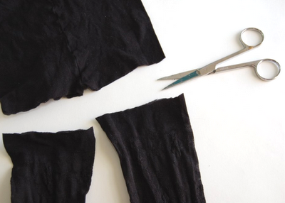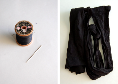 Paso 8: Cortamos las medias viejas en dos pedazos y hacemos un nudo a la extremidad.