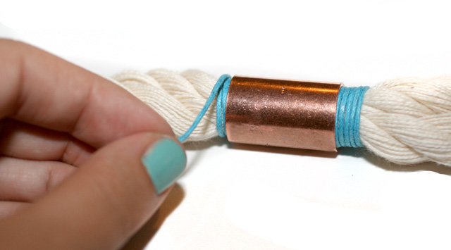 Paso 3: Envolvemos el hilo de color azul al lado del tubo de cobre.
