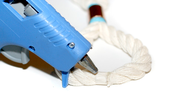 Paso 5: Pegamos las dos extremidades de la cuerda gruesa la una con la otra ayudándonos con la pistola.