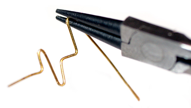 Paso 1: Dejamos una pulgada de cable recto al principio y con la punta de los alicates doblamos el cable para crear un patrón que recuerde el latido cardiaco.