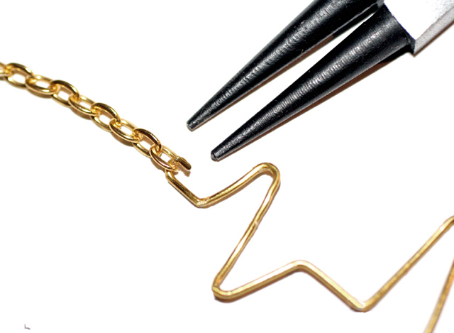 Paso 2: Una vez realizado el patrón deseado, doblamos las puntas de las extremidades a crear como dos enganches y allí conectamos la cadena.