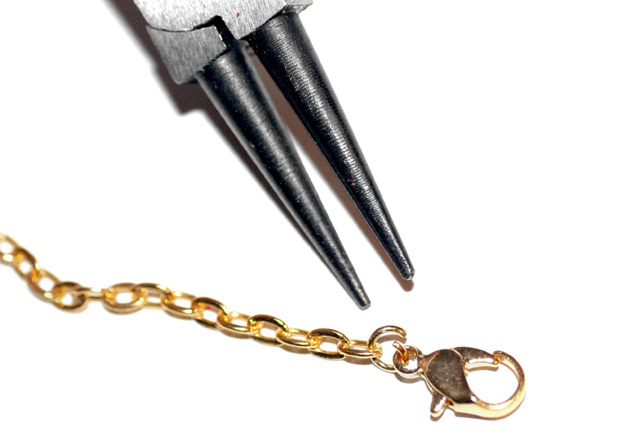 Paso 3: Al otro lado de la cadena enganchamos el cierre utilizando un anillo abierto. Luego a la otra extremidad enganchamos el otro anillo abierto y cerramos.