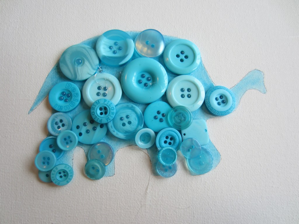 Paso 3: Selecciona los botones y comienza a pegarlos. Los más grandes te servirán para el cuerpo y los más pequeños para las zonas más estrechas.
