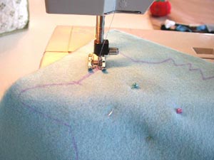 Paso 2: Con la máquina de coser, sigue el contorno de la figura recordando dejar un agujero para el relleno.