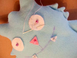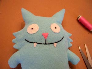 Paso 5: Ahora, con hilo negro, borda la boca y los ojos.