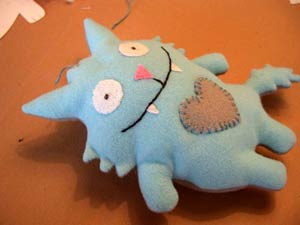 Paso 6: Recorta el corazón del gato de fieltro y cóselo en el centro de la barriga.