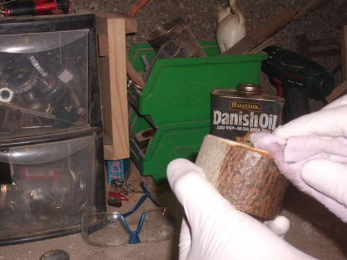 Paso 5: Aplicamos el aceite o la cera con un pañuelo para darle brillo y el portavela estará listo.