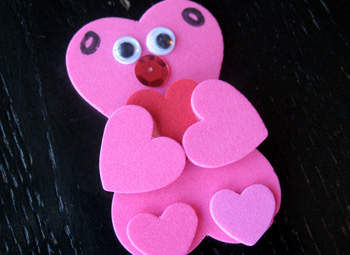 que chulo el oso con corazones de goma eva