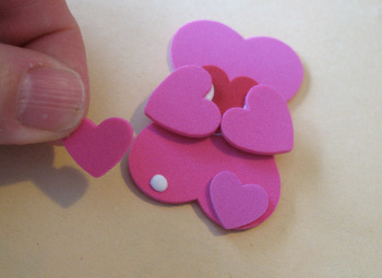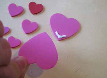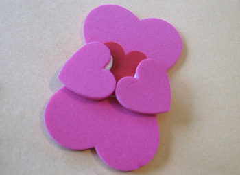 Paso 3: Pega los dos corazones medianos de color rosa justo en el medio, a ambos lados del corazón rojo.