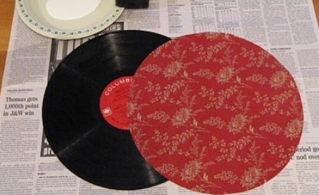 Paso 1: Recorta un trozo de tela más grande que el disco de vinilo, al menos unos 6 centímetros más de diámetro.