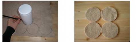 El primer paso será extender el fieltro sobre una superficie plana y comenzar a marcar los círculos, todos del mismo tamaño. Una vez que hayas terminado, comienza a recortarlos uno por uno.