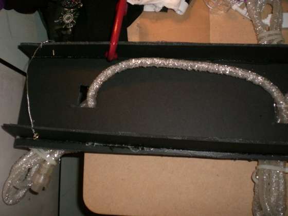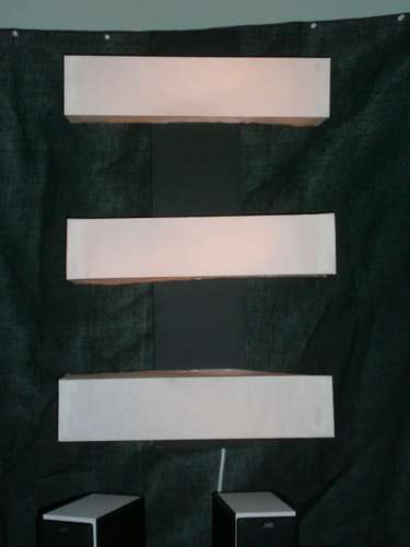 Paso 2: Realizar tres agujeros en la madera y poner los cables de las lámparas, tal y como se aprecia en la foto.