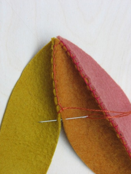 Paso 2: Alinéa las diferentes piezas de fieltro y ve uniéndolas una a una.