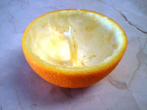 Paso 1: Cortar una naranja en dos y vaciar el contenido con una cuchara. Deberás dejar solo la parte central.