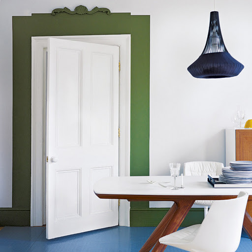1. Pinta la puerta y crea un marco a su alrededor. Verás que la habitación cobra nueva vida. Es una de las formas más originales de renovar puertas.