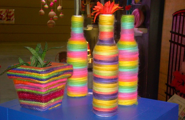 3. Combina las botellas con otro adorno, como en esta imagen.