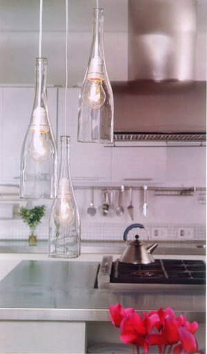 1. Una excelente idea es tomar las botellas de cristal y convertirlas en lámparas. Las opciones son prácticamente infinitas, como puedes apreciar. Solo tu imaginación pondrá los límites.