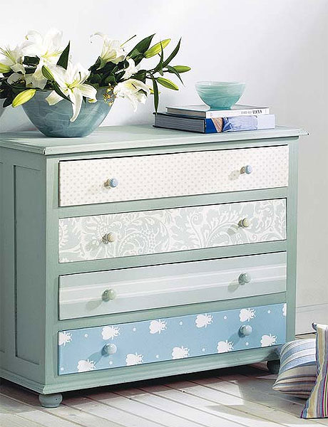 He aquí algunas ideas para decorar con papel pintado todos esos muebles viejos de los cuales estabas a punto de deshacerte.