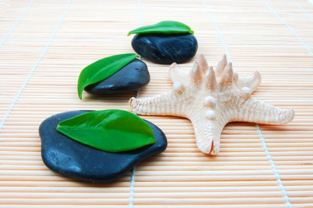2. Toma unas hojas de una planta y una estrella de mar. Crea una composición, ideal para decorar un baño.