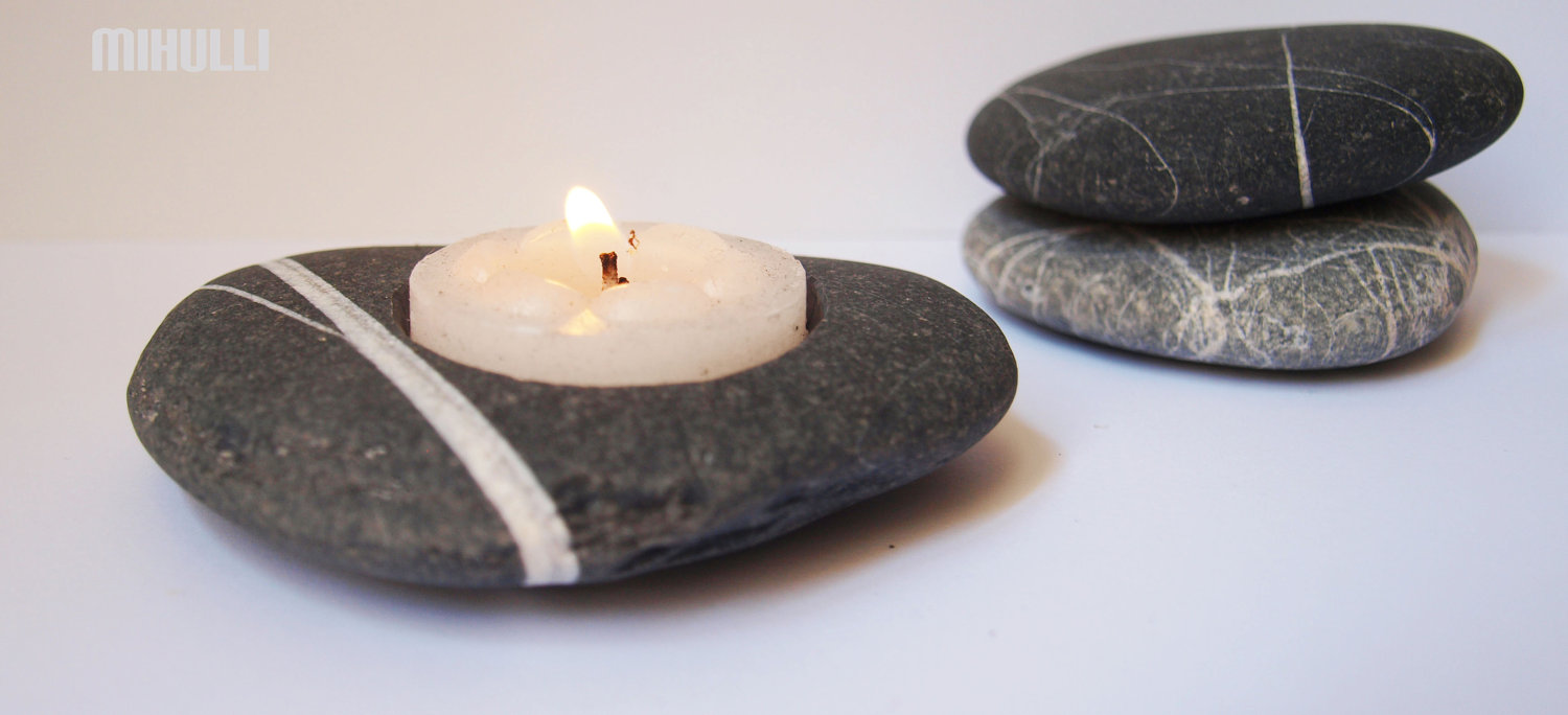 4. Usa las piedras como portavelas. Deberás trabajarlas un poco en el centro pero el resultado final bien vale la pena.