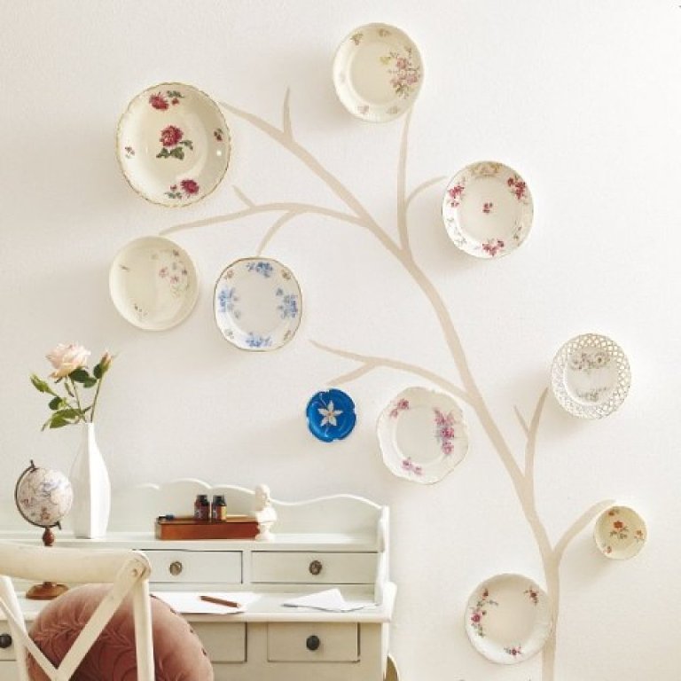 hola me gusto mucho las ideas, pero me gustaría saber con que las pego a la pared, tengo otra duda tengo muchos platos de plásticos con ellos puedo decorar, y que podría hacer con ellos