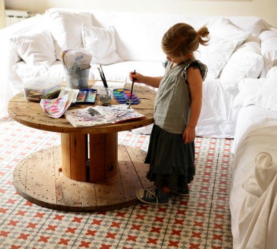 Y si tienes a mano un carrete más pequeño, podrás hacer una butaca para los niños.