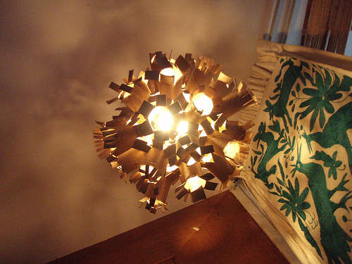 Paso 4: Dejar los últimos 5 tubos y conectarlos con presillas. De esta forma podrás poner el bulbo con el bombillo en el interior y la lámpara estará terminada. Si quieres, puedes cortar el otro lado de los tubos ya que así el resultado final será más refinado.