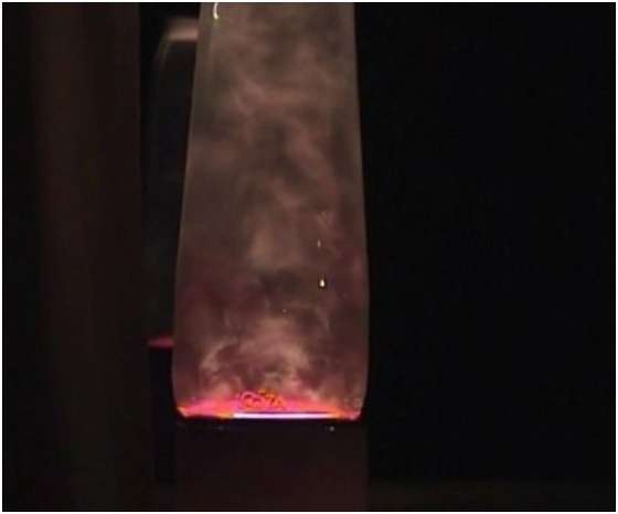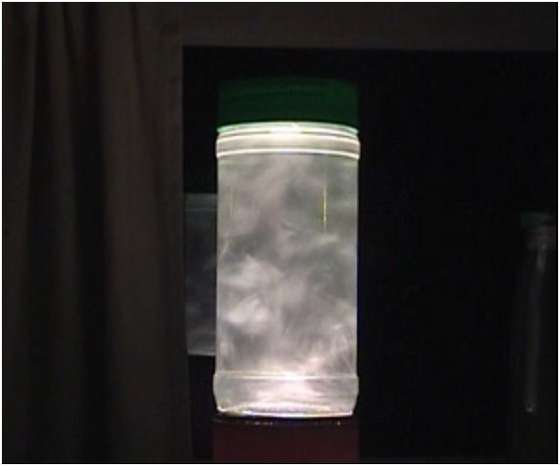 Paso 3: Poner la botella encima del tubo y encender la luz y tienes tu lámpara con pompas de jabón.