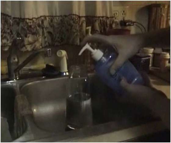 Paso 2: Llenar la botella (cuidando que su diámetro coincida con el pvc), con agua caliente y jabón, luego mezclar el agua hasta que se vean los efectos del jabón.