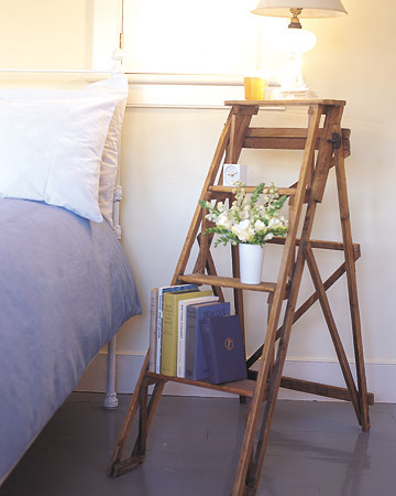 3. Mesita de noche hecha a partir de una pequeña escalera. Si tienes en casa una escalera que ya no usas más, he aquí una excelente forma de devolverla a la vida.