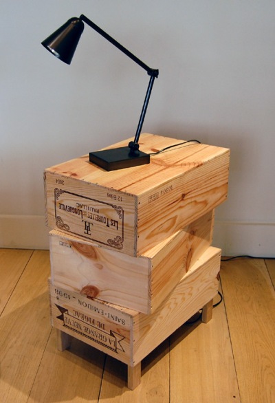 5. Mesita de noche hecha a partir de cajas de vino. Para lograr una como la que aparece en la imagen, solo necesitarás cuatro patas, que podrás obtener de una de las cajas.