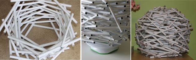 Paso 1: Toma una hoja de papel y haz un tubo, enrollándola sobre sí misma. Aplica pegamento para que no se deshaga. La cantidad de tubos que deberás hacer depende del tamaño de la lámpara pero como media, deberás hacer unos 200 tubos. Lo ideal es que hicieras los tubos de papel ayudándote de un tubo fino porque así todos te quedarán más o menos del mismo grosor.