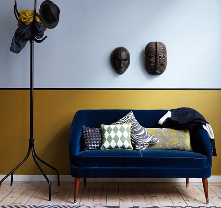 1. Puedes combinar el ocre y el azul usando una línea separadora en el centro. El resultado es muy chic y juvenil.
