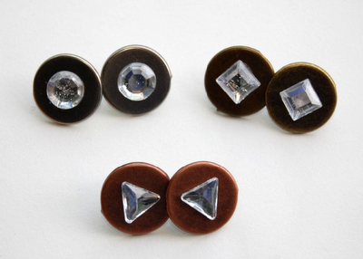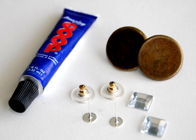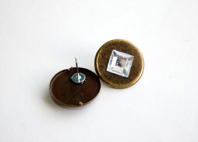 Paso 2: Pegamos las gemas en la parte anterior de la presilla con el pegamento para joyería así como los apliques para pendientes que servirán para sujetarlos a las orejas (obviamente, estos se colocarán en la parte trasera del pendiente).