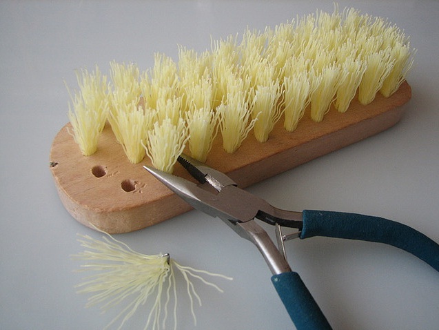 Para realizar este portacartas necesitarás de un cepillo relativamente grande de lavar, al cual deberás quitarle los pelos ayudándote con unas pinzas.