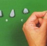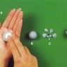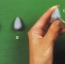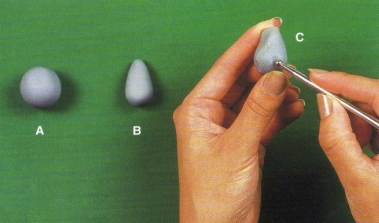 A) Forrar una bolita de telgopor nº 3 con un recorte de masa teñida de óleo gris. Ubicar la masa en la palma de la mano y encima la bolita.