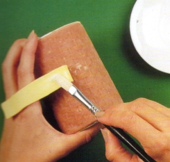 3 – Cubrir toda la cinta de enmascarar con cola vinílica y forrarla con la masa.