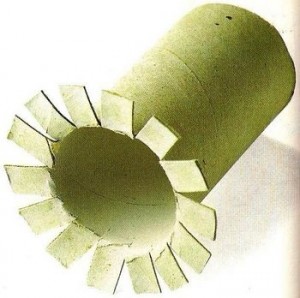 1- Recorta pestañas en uno de los extremos del tubo y dóblalas hacia fuera