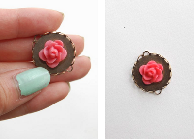 Paso 2: Toma el pegamento, colócalo en la base de la rosa y pégala a la base del camafeo.