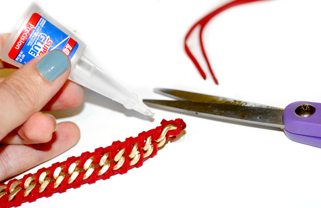 Paso 5: Cuando termines, haz un nudo y aplica un poco de pegamento para que no se deshaga.