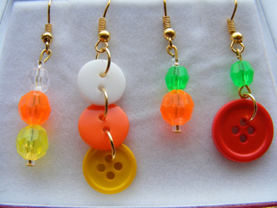 Las chicas que sean amantes de los pendientes originales encontrarán en este modelo una idea muy colorida y particular: se trata de pendientes hechos con botones.
