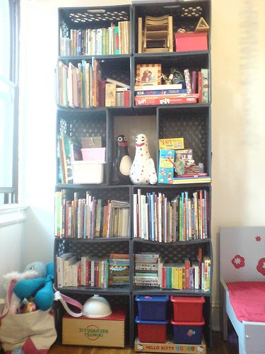 Como podrás apreciar, algunas ideas son tan sencillas como este librero, simplemente se limita a recordar cuando éramos pequeños y jugábamos a construir con los bloques de Lego. Eso sí, recuerda sujetar las cajas a la pared para que no se caigan.