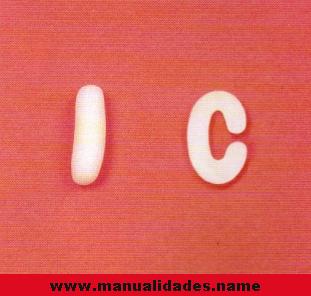 2 – Amasar un rollo de masa color natural y curvarlo hasta formar una letra “C”.