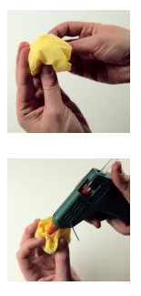 Paso 3: Recorta un rectángulo en el papel crepé y arrúgalo para formar una pelotica. Aplica un poco de pegamento para que no se abra.