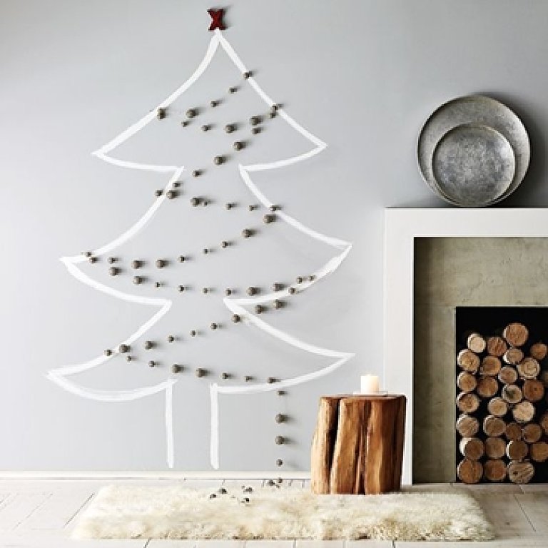 3. Pinta el árbol en la pared y adórnalo con una guirnalda, claro, si después tienes planificado pintar nuevamente la pared.