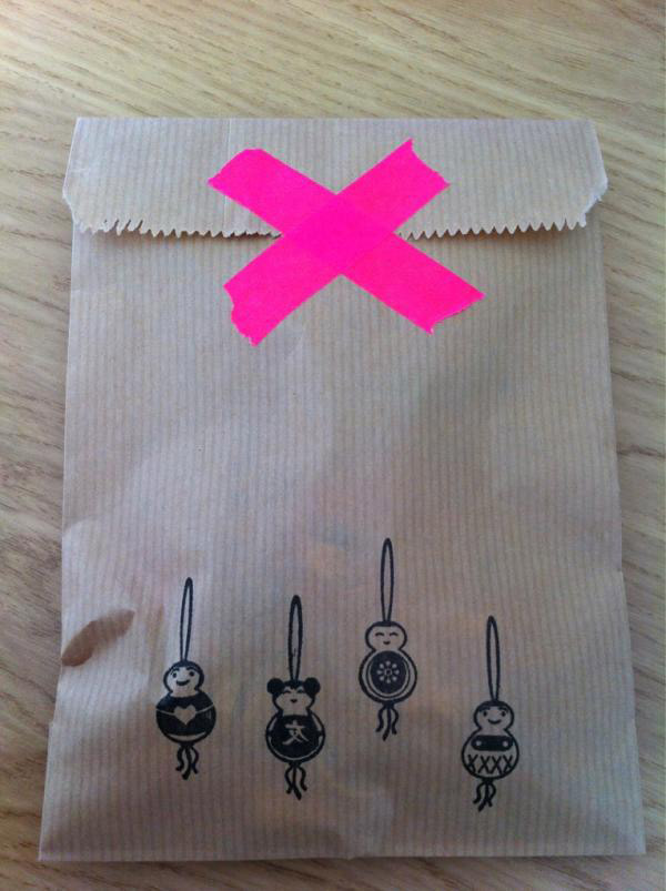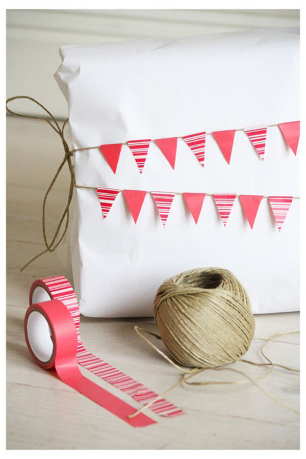 5. Cinta adhesiva de colores, papel blanco y un hilo es todo lo que necesitarás para obtener esta envoltura de regalo.